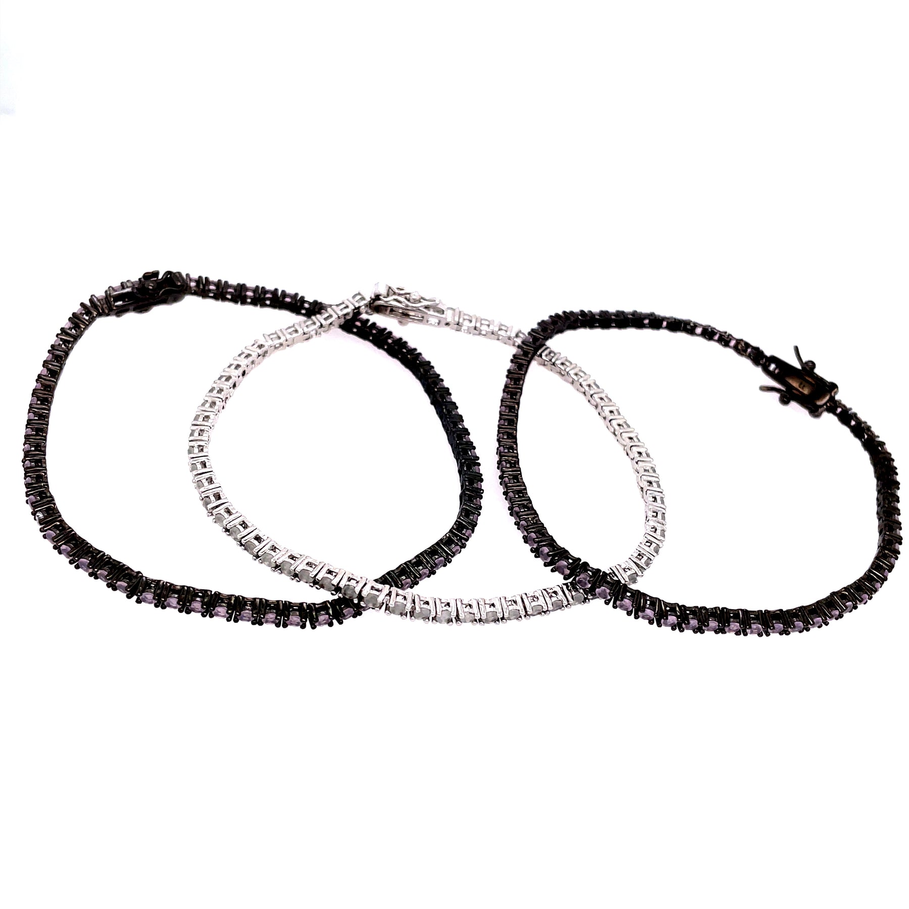 Stunning pink and clear cubic zirconia embellished tennis bracelets that can be worn in various combinations. Set of three!