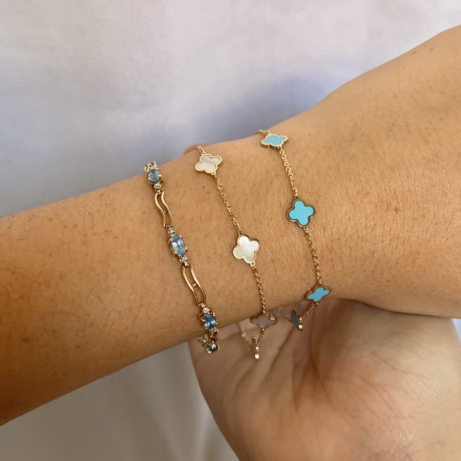 This gold clover bracelet is truly timeless - but oh so fun! Play around with layering this piece.
